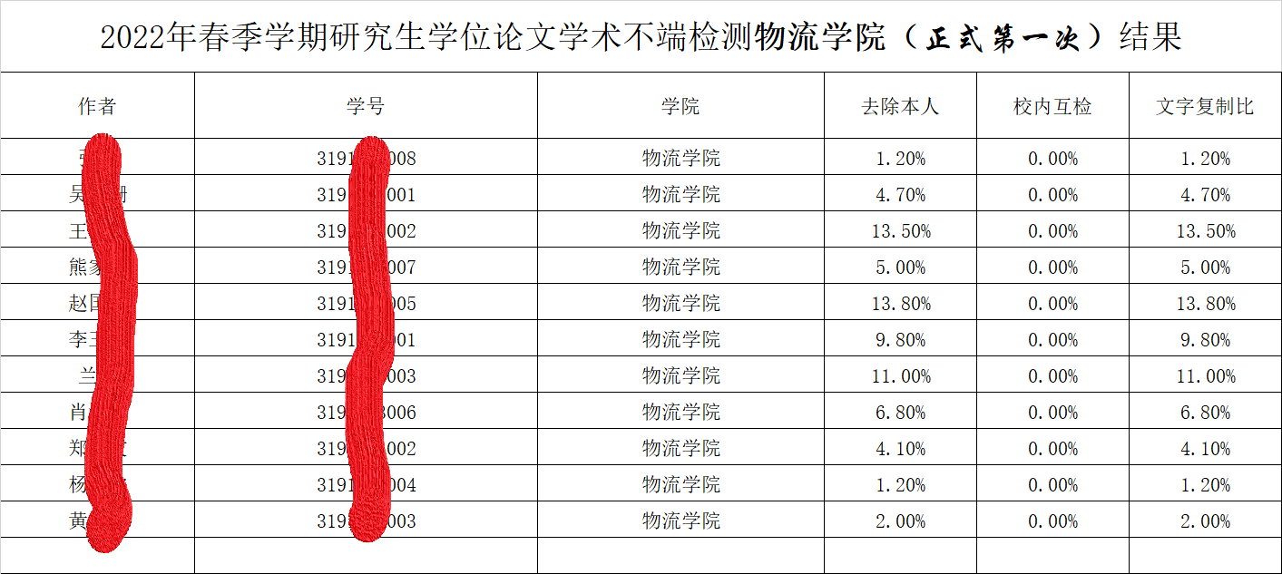 2022年春季学期研究生学位论文学术不端检测结果公示(伟德国际1949检测第一次)