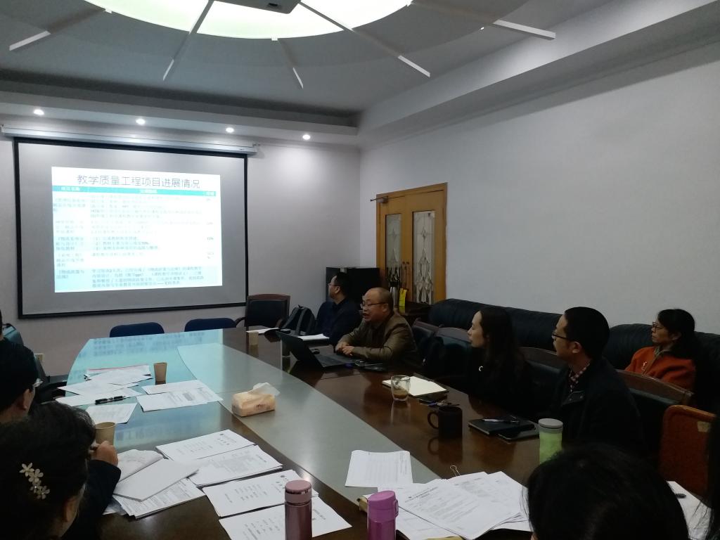 刘成华副院长代表学院做了期中教学检查汇报,主要从课程专项评估、毕业论文(设计)持续改进、教研教改和本科教学工程项目进展、教学项目经费执行使用和常规教学等五个方面做了汇报。汇报后,方睿处长就专项检查时期拉长,为啥要重点对课程评估、教改和本科教学工程项目及几个项目经费打总合在一起的情况详查做了说明。