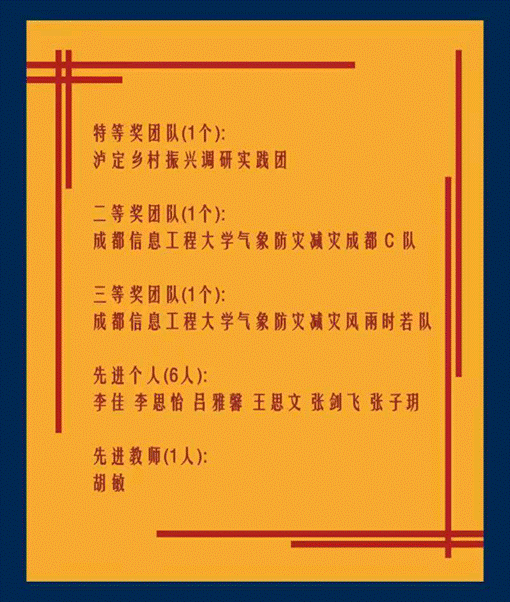 为深入贯彻习近平新时代中国特色社会主义思想和党的十九届六中全会精神,迎接党的二十大胜利召开。在校团委学院党委的领导下,我院2022年大学生暑期社会实践活动取得圆满成功。在本次暑假社会实践活动中,,我院共有3支团队获得校级先进团队,6位先进个人,1位先进教师,获表彰名单如下: