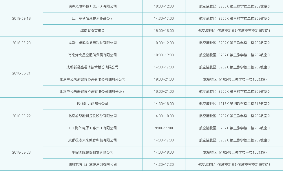 宣讲会场次信息