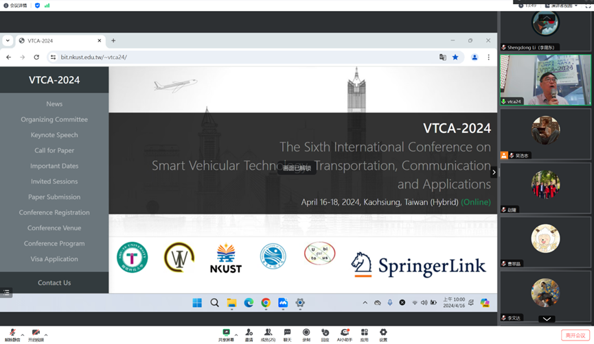 第六届智能车载技术、运输、通讯与应用国际会议(International Conference on Smart Vehicular Technology, Transportation, Communication and Applications, VTCA)于2024年4月16-18日在高雄市举行。会议采用线下与线上相结合的方式举办。来自北京交通大学、南京信息工程大学、沙特国王大学、中国铁路设计集团等机构的专家学者、企业人员、研究生参与了本次会议。