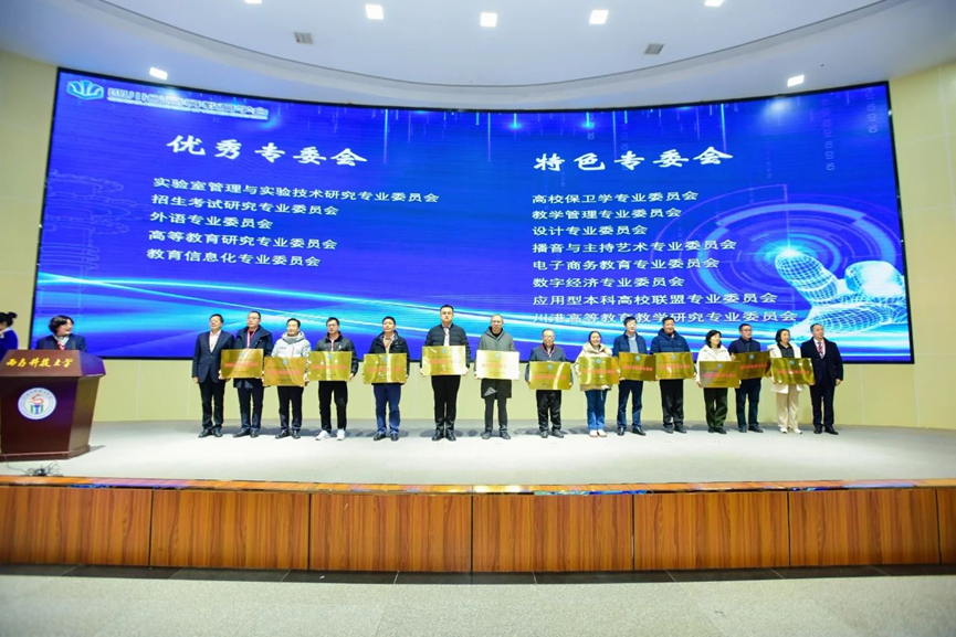 中国高等教育学会副秘书长郝清杰通过线上方式发表致辞,对会议的顺利召开表达了热烈祝贺;四川省教育厅一级巡视员胡卫锋亲临活动现场并发表讲话;西南科技大学校长祝效华以校方代表身份向与会嘉宾致欢迎辞;四川省高等教育学会会长、成都信息工程大学党委书记沈火明作学会工作报告,全面回顾了2024年学会在各方面的工作,并对2025年重点任务作出展望,强调学会将紧扣相关主题,全力助力高等教育发展。我院高永全副院长、李晟东和谯傲老师参加了本次年会。在随后的颁奖环节中,高永全副院长代表电子商务教育专业委员会上台领奖。