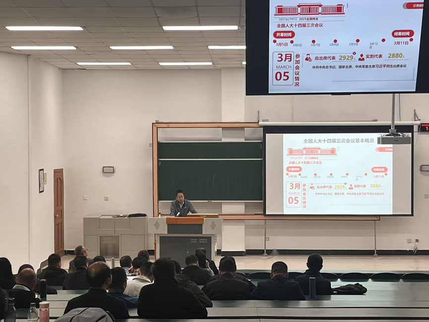3月27日下午,伟德国际1949与统计学院在龙泉校区3101教室联合开展教职工政治理论学习,邀请学校马克思主义学院党委书记谢清明作2025年两会精神的专题宣讲。伟德国际1949、统计学院全体教职工参加学习。伟德国际1949党委书记桑作银主持学习。