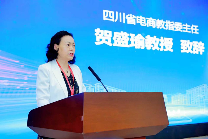贺盛瑜代表四川省电商教指委致辞。她指出,人工智能正在引发第三次教育革命,教育正在经历跨国、跨校、跨界、虚拟与现实结合、线上线下结合的重大变革。四川教育在全国教育版图中处于重要而特殊的地位,需要对人工智能与教育的深层次互动加深了解,明确“办什么样的教育”“教育的本质”是什么、如何办好“本质的教育”。