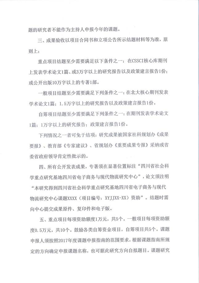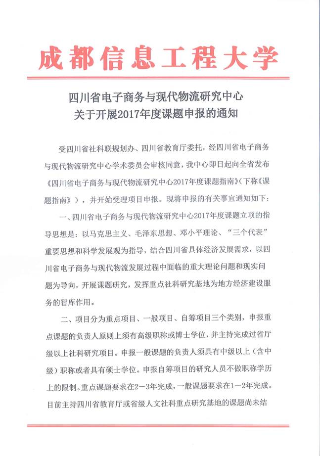 17年度四川省电子商务与现代物流研究中心课题发布通知