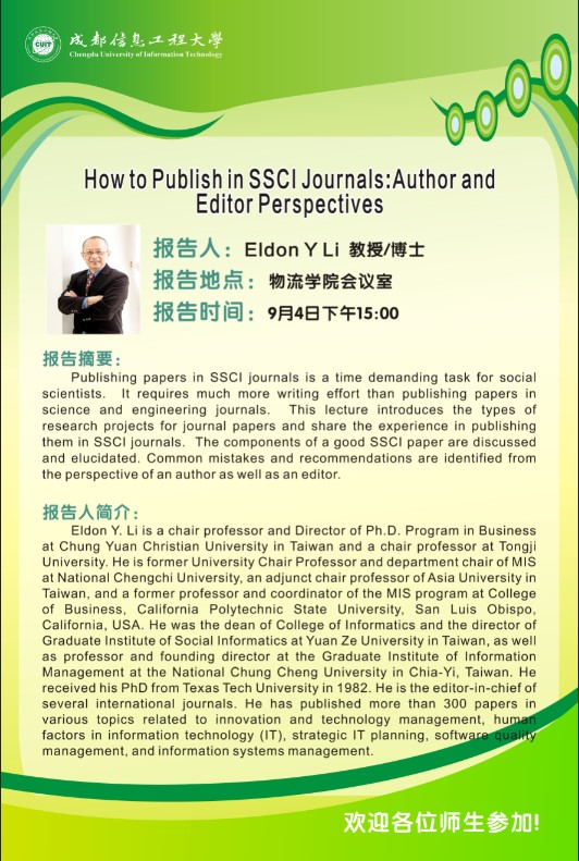 【学术预告】How to Publish in SSCI Journals: Author and Editor Perspectives