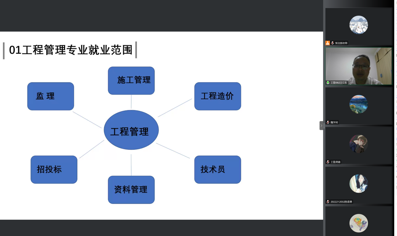 本次见面会加深了2022级新生对工程管理专业的了解,同时为学生与老师之间架起沟通的桥梁,为工程管理专业发展打下良好的基础。未来,工程管理系还将进一步夯实专业班导师工作,开展与学生面对面的交流会,使得专业教研活动走“走出教研室,走向教室、走近学生”,办有“温度”的工程管理专业。祝福工程管理专业学子,在新的起点上不负期待、乘风破浪,在刻苦学习中成长,在奋斗中奔跑,在阳光下灿烂,在成都信息工程大学遇见更好的自己!